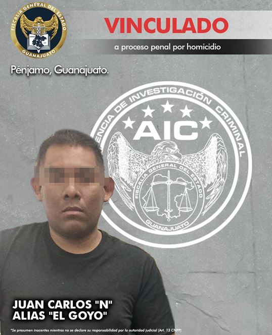 Pénjamo, Gto. 10 de diciembre de 2024.- “El Goyo” es acusado del asesinato de un interno en un anexo del municipio de Pénjamo. El presunto homicida fue capturado por Agentes de Investigación Criminal y vinculado a proceso penal.