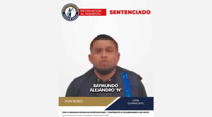 RAYMUNDO ALEJANDRO “N” fue sentenciado a 21 años de cárcel por cometer varios robos con violencia, durante el año 2022, en la ciudad de León.