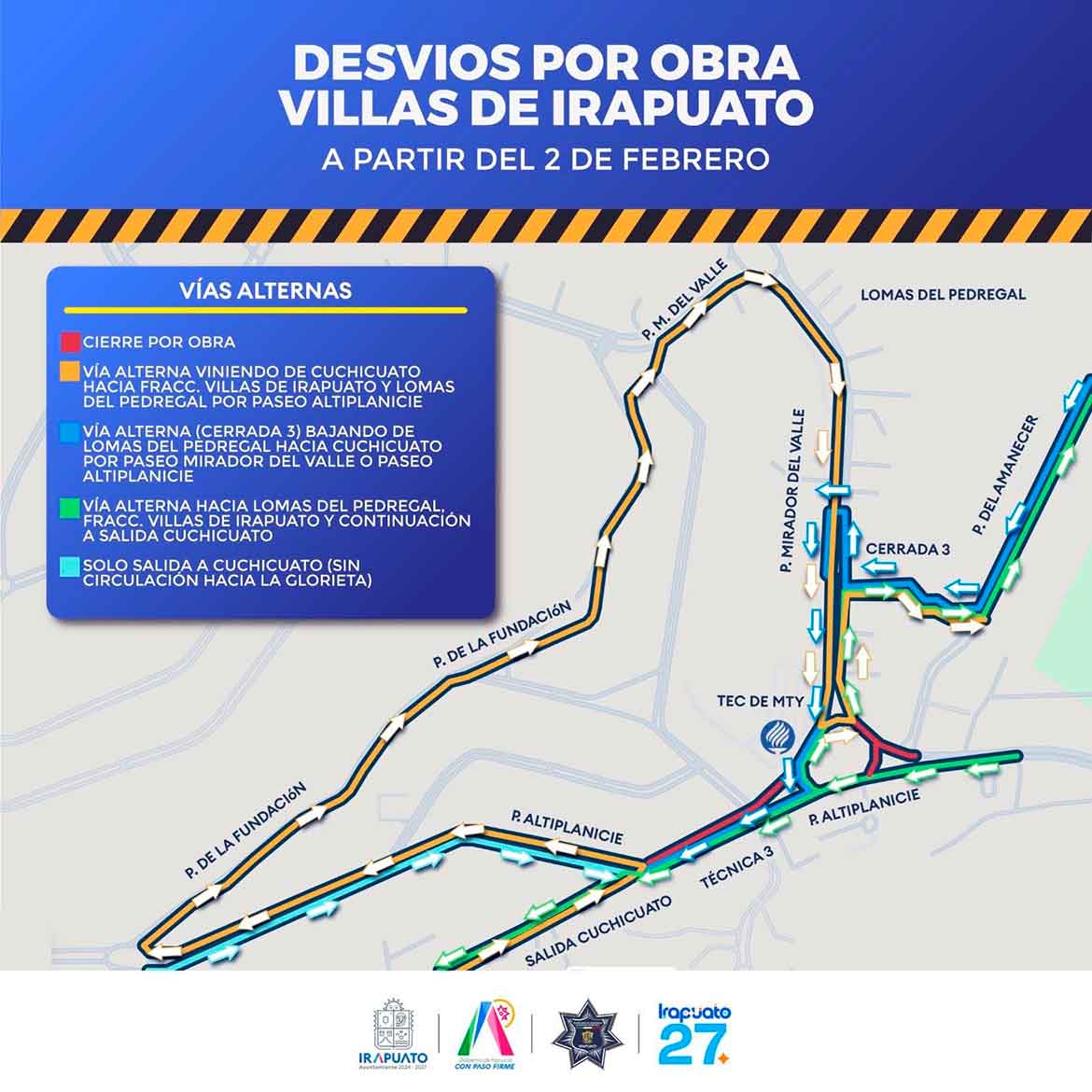 A partir del lunes 2 de febrero, se realizará el cierre del cuerpo norte de Paseo de la Altiplanicie, en el tramo que va de la glorieta a la salida a Cuchicuato, debido al avance de los trabajos.