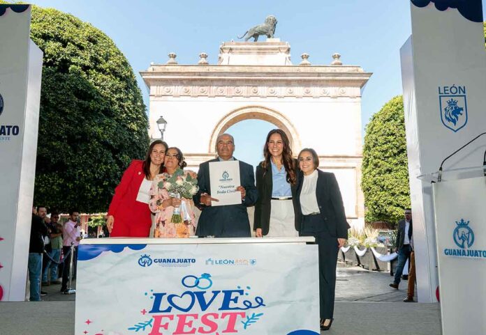 En el Estado la campaña Love Fest contempla a 150 matrimonios de León, 60 de Silao, 60 de Irapuato, 50 de Guanajuato y 50 de Pénjamo; y refrenda el compromiso del Gobierno de la Gente con la seguridad jurídica, la inclusión social y el fortalecimiento de las familias, como pilares para la construcción de comunidades más sólidas, con mayor bienestar y mejores oportunidades para todas y todos.