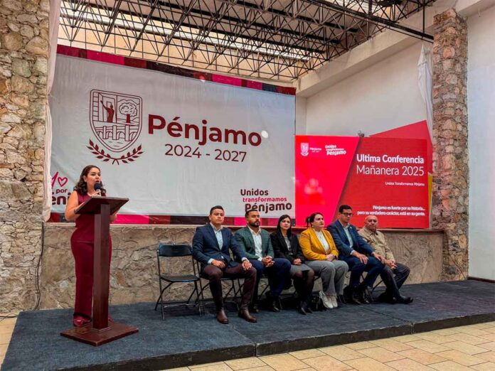 Pénjamo, Guanajuato.- Bajo la premisa de que «Pénjamo es fuerte por su historia, pero su verdadero carácter está en su gente», la Alcaldesa Yozajamby Molina encabezó la última conferencia matutina del año, donde presentó un balance de los primeros meses de gestión caracterizados por el saneamiento financiero, el orden administrativo y una inversión pública sin precedentes.