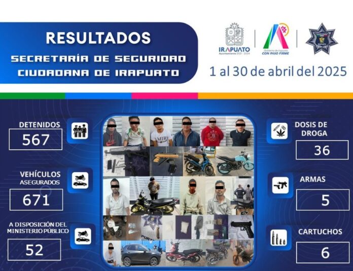detuvo a 567 personas, 523 por faltas administrativas y 44 más por la comisión