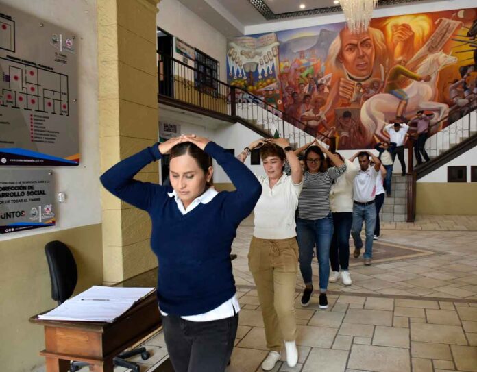 Este día 19 de septiembre, en conmemoración y en recuerdo de los sismos vividos en el año de 1985, personal de las diferentes oficinas, trabajaron en efectuar una correcta evacuación, con las diferentes recomendaciones de respuesta, como salir en orden, sin correr ni empujar, ayudar a quien esté en problemas para poder poner a salvo a todas las personas.
