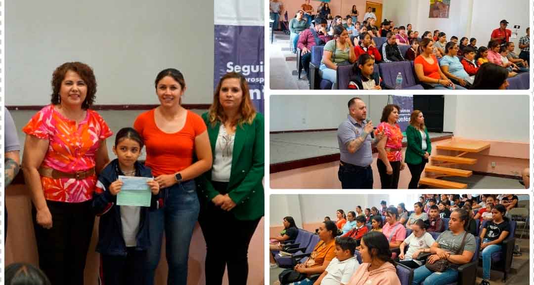 En su mensaje la presidenta municipal felicitó y agradeció a los padres de familia por apoyar a sus hijos en sus estudios, además mencionó: si logramos coordinarnos sociedad y gobierno lograremos crear una sociedad de hombre y mujeres de bien que puedan cumplir sus metas y sueños que se planteen. Ese es el gran reto que como administración tenemos, pero con el apoyo de ustedes padres y madres de familia lograremos.