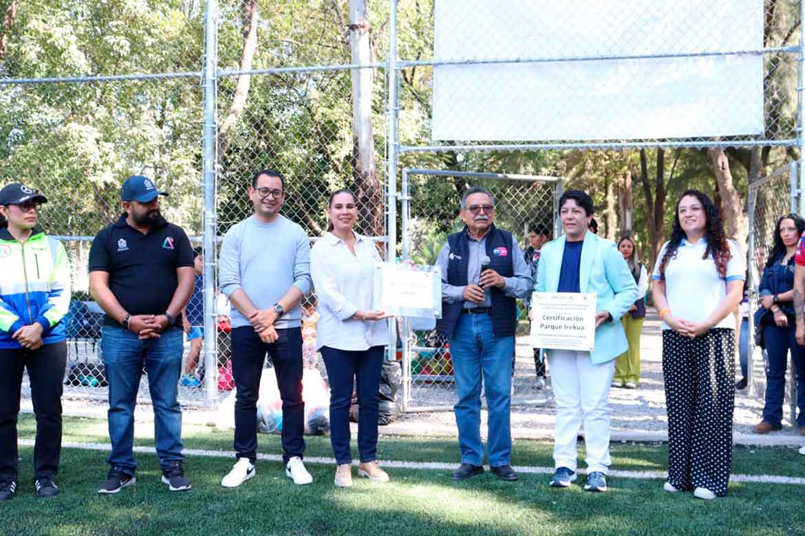 Irapuato, Gto. 15 de diciembre del 2024.- Por sus excelentes instalaciones, actividades deportivas, educativas y de esparcimiento, el Gobierno del Estado de Guanajuato a través de la Secretaría de Salud, otorgó al Parque Irekua, La Casa de las Familias, la certificación como Entorno Favorable para la Salud.