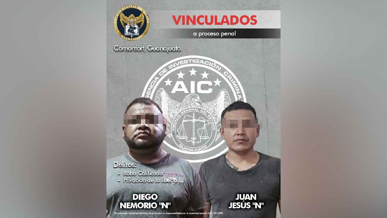 Tras el reporte de los hechos, los presuntos delincuentes fueron ubicados y detenidos por elementos preventivos y puestos a disposición de la Fiscalía de Guanajuato, donde se llevó a cabo la investigación para obtener elementos de prueba con los que se acreditó su probable responsabilidad en los hechos.
