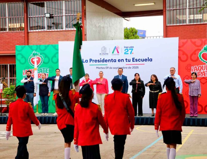 Irapuato, Gto.- a 09 septiembre del 2025.- Para fomentar los valores cívicos, el amor por la patria y fortalecer la cercanía con las instituciones educativas, el Gobierno de Irapuato, a través de la Dirección de Educación, lleva a cabo el programa “La Presidenta en tu Escuela”, que en esta ocasión visitó la primaria Adolfo López Mateos.
