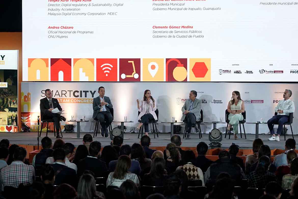 Junto a la Alcaldesa de Irapuato, participaron en el foro: Tengku Azrul Tengku Azhar, director de Digital Regulatory & Sustainability de la Malaysia Digital Economy Corporation; Andrea Cházaro, oficial nacional de Programas de ONU Mujeres; Clemente Gómez Medina, secretario de Servicios Públicos del Gobierno de la Ciudad de Puebla; Ricardo Moreno, presidente municipal de Toluca y, como moderador del panel, Eduardo Rivera, presidente del Consejo Editorial de Grupo Mundo Ejecutivo.