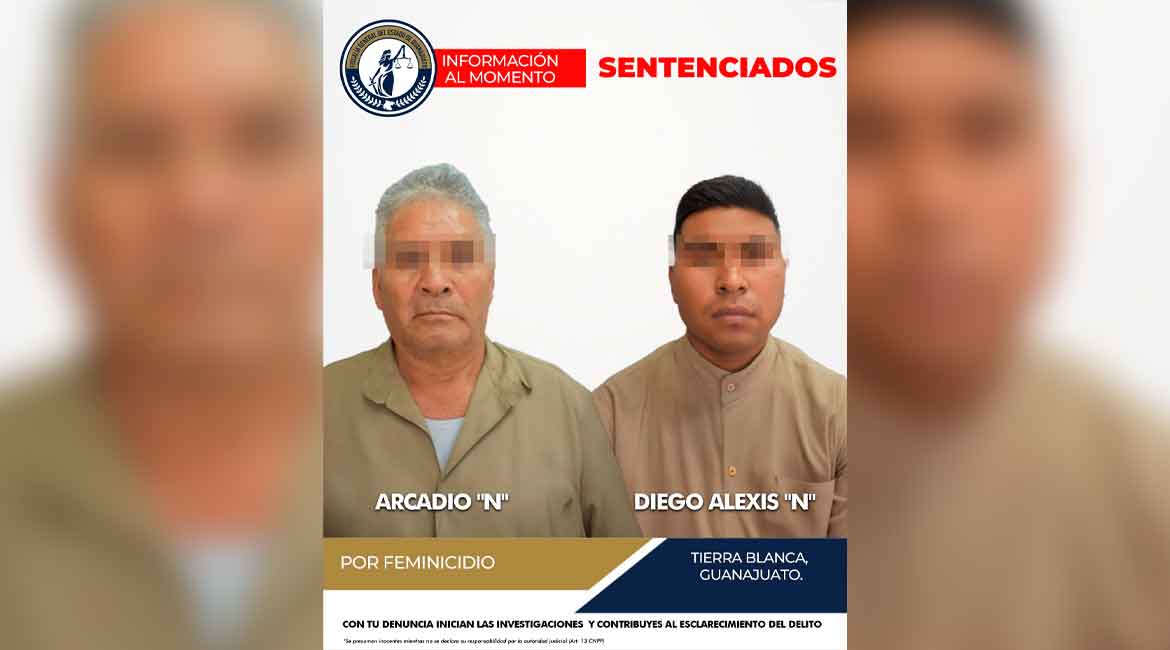 La Fiscalía General del Estado de Guanajuato, a través de una agente del Ministerio Público, logró una sentencia condenatoria de 30 años de prisión para ARCADIO “N” y DIEGO ALEXIS “N” por su responsabilidad en el delito de feminicidio ocurrido en el municipio de Tierra Blanca.