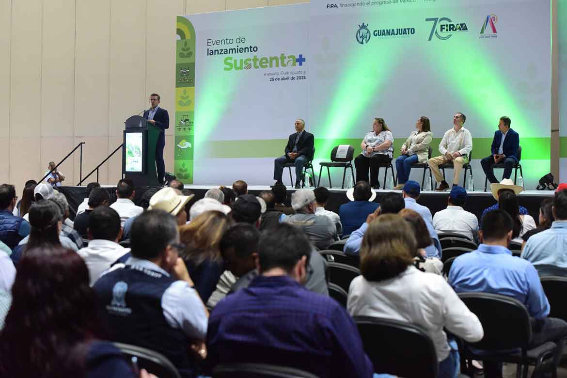 Irapuato, Guanajuato, 25 de abril de 2025. – Los Fideicomisos Instituidos en Relación con la Agricultura, FIRA-Banco de México, anunciaron el lanzamiento de Sustenta+, una iniciativa estratégica que busca acelerar la adopción de prácticas agrícolas sostenibles mediante incentivos financieros, innovaciones tecnológicas sustentables y financiamiento a proyectos agrícolas que favorezcan el cuidado del medio ambiente.