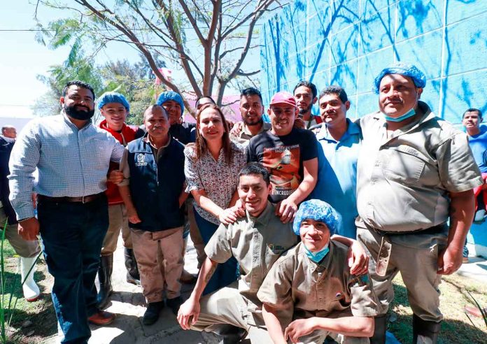 Lorena Alfaro García, presidenta municipal, quien ha impulsado las mejoras en el Rastro, encabezó la inauguración de este espacio que consolida la cadena de almacenamiento, sacrificio y procesamiento de la carne hasta su entrega y venta.