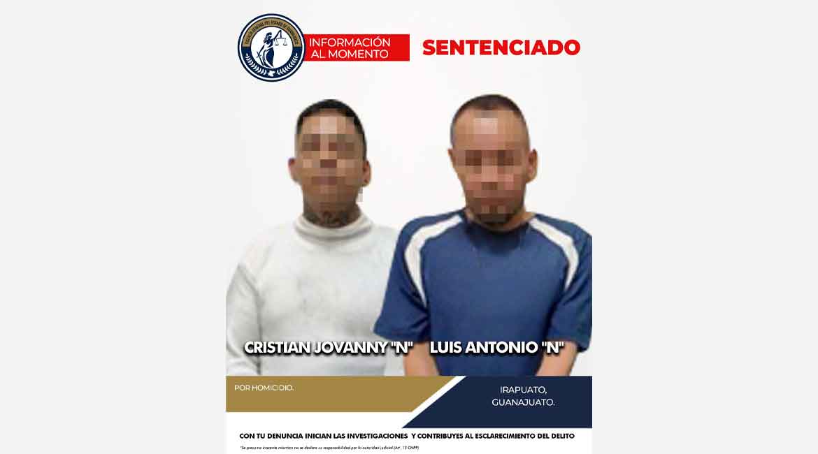 La Fiscalía General del Estado logró que un juez dictara sentencia condenatoria en procedimiento abreviado contra CRISTIAN JOVANNY «N» y LUIS ANTONIO «N», tras comprobarse su responsabilidad en el homicidio de una persona en la ciudad de Irapuato. Con este tipo de procedimiento, los acusados aceptaron su participación en el crimen, lo que permitió que sus procesos penales fueran más rápidos y directos.