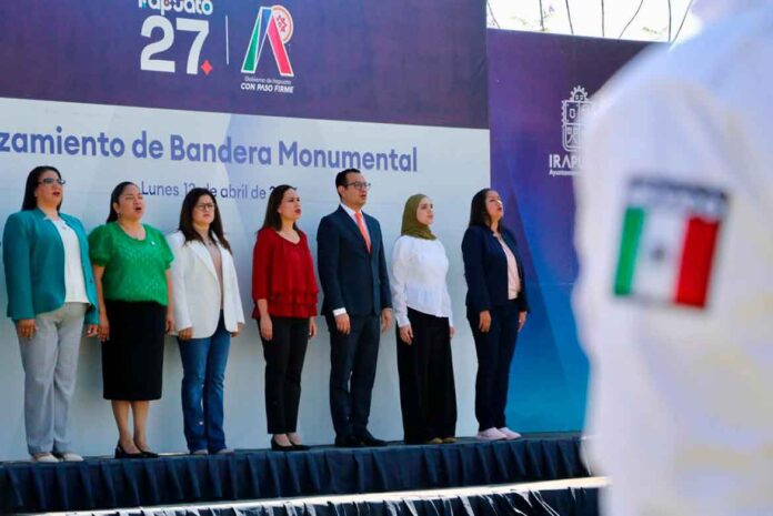 Irapuato, Gto. 13 de abril de 2026. – Con el objetivo de reforzar los valores, la identidad y la historia como pilares fundamentales para convivir en paz y construir comunidad, se llevó a cabo el acto cívico de Izamiento de Bandera Monumental correspondiente al cuarto mes del año.