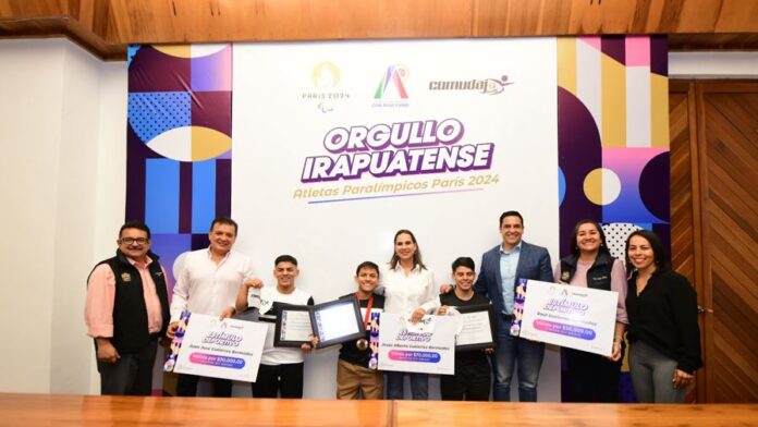 Irapuato, Gto. 26 de septiembre del 2024.- El Gobierno Municipal entregó reconocimientos y estímulos económicos a los hermanos Raúl, Juan José y Jesús Alberto Gutiérrez Bermúdez, por su participación en los Juegos Paralímpicos París 2024.