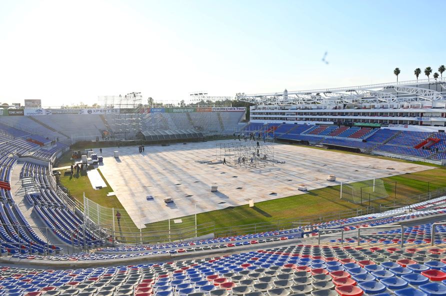 Irapuato, Gto. 04 de diciembre 2024.- El montaje del escenario donde se presentará Luis Miguel en el estadio Sergio León Chávez marcha en tiempo y forma, solo falta la instalación de pantallas y parte del audio, así lo informó el representante de Music Vive, Mario Durán, empresa involucrada en la promoción del concierto.