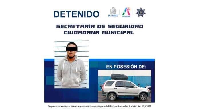 En otro caso, un masculino fue detenido por personal de la Policía Municipal de Irapuato cuando viajaban a bordo de una camioneta CV-R Honda con reporte de robo vigente.
