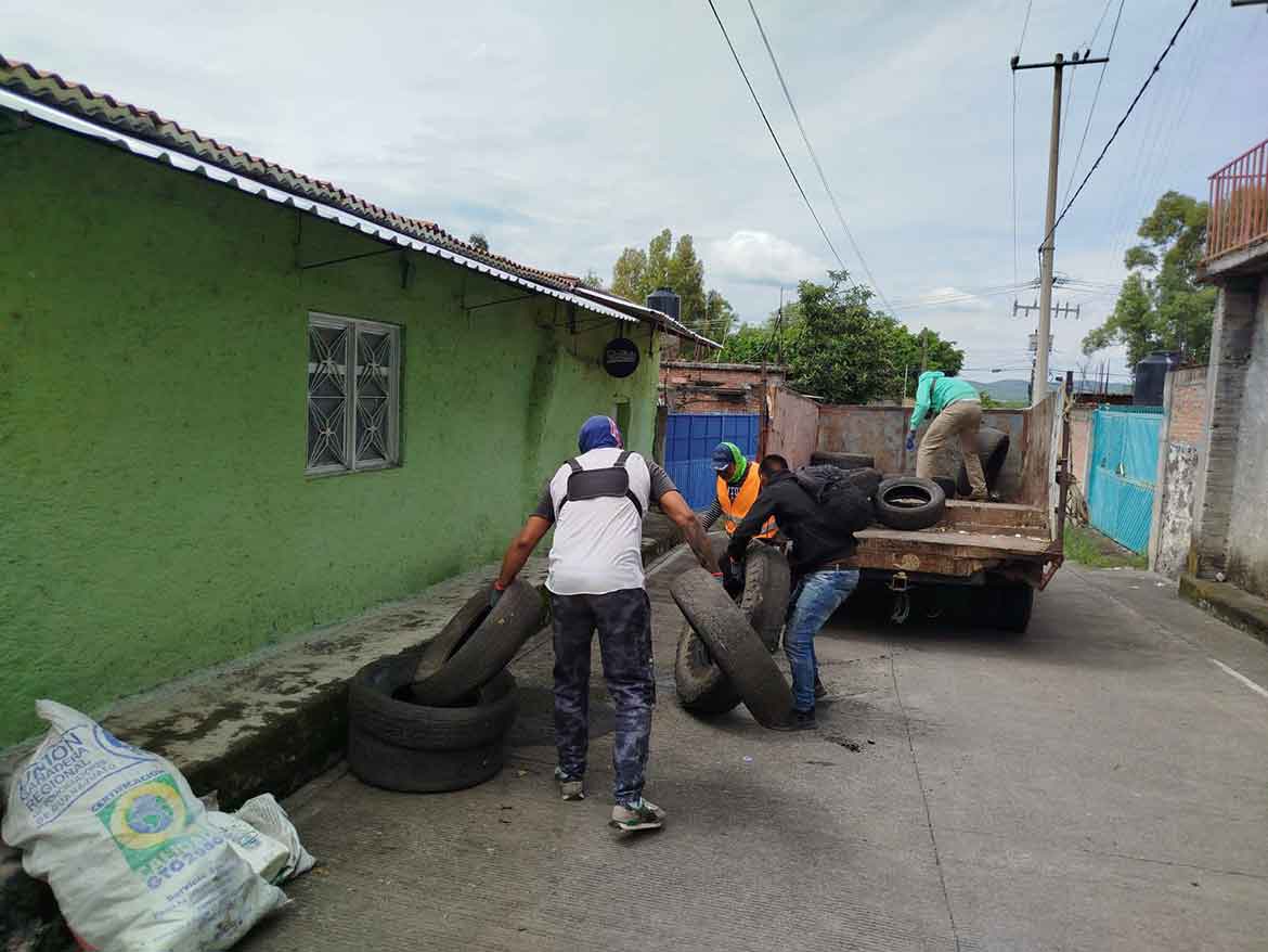 En la comunidad Quiahuyo, también se retiraron 2 toneladas de residuos, en el Panteón Dolores, ubicado en la zona centro, se realizó una limpieza en coordinación con Servicios Públicos Municipales, recolectando 1.5 toneladas de basura y materiales que favorecen la reproducción del mosquito.