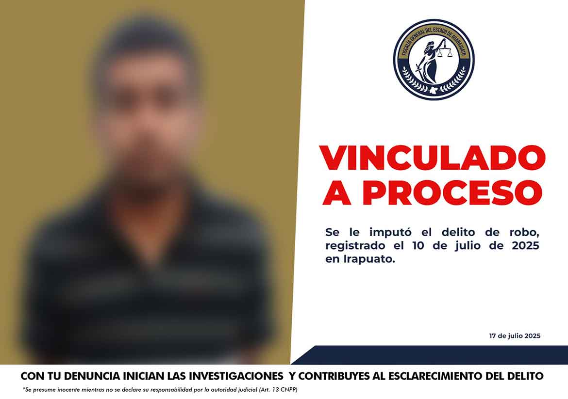 La Fiscalía de Guanajuato, inició las investigaciones correspondientes que permitieron que DANIEL ALBERTO “N” se encuentre en prisión preventiva acusado del delito de robo calificado.