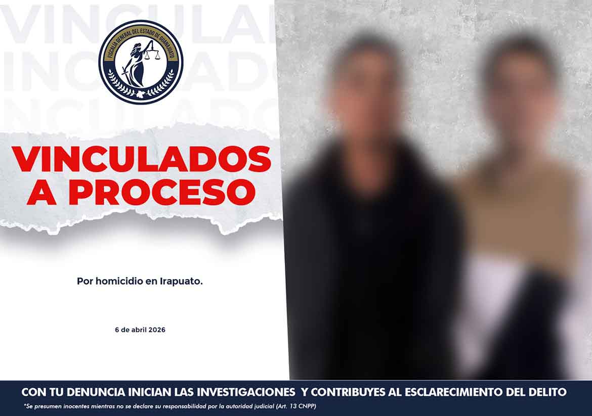 Los elementos de prueba presentados por el agente del Ministerio Público de la Fiscalía de Guanajuato, permitió que un Juez de Control emitiera auto de vinculación a proceso penal en contra de LUIS FERNANDO “N” y JUAN SAÚL “N” por el delito de homicidio calificado.