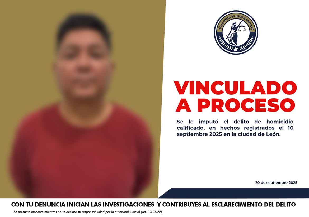 La Fiscalía General del Estado de Guanajuato informa que fue vinculado a proceso penal JOSÉ LUIS “N”, por su probable participación en el delito de homicidio calificado cometido en agravio de un Defensor Público, en hechos ocurridos el pasado 10 de septiembre en esta ciudad.